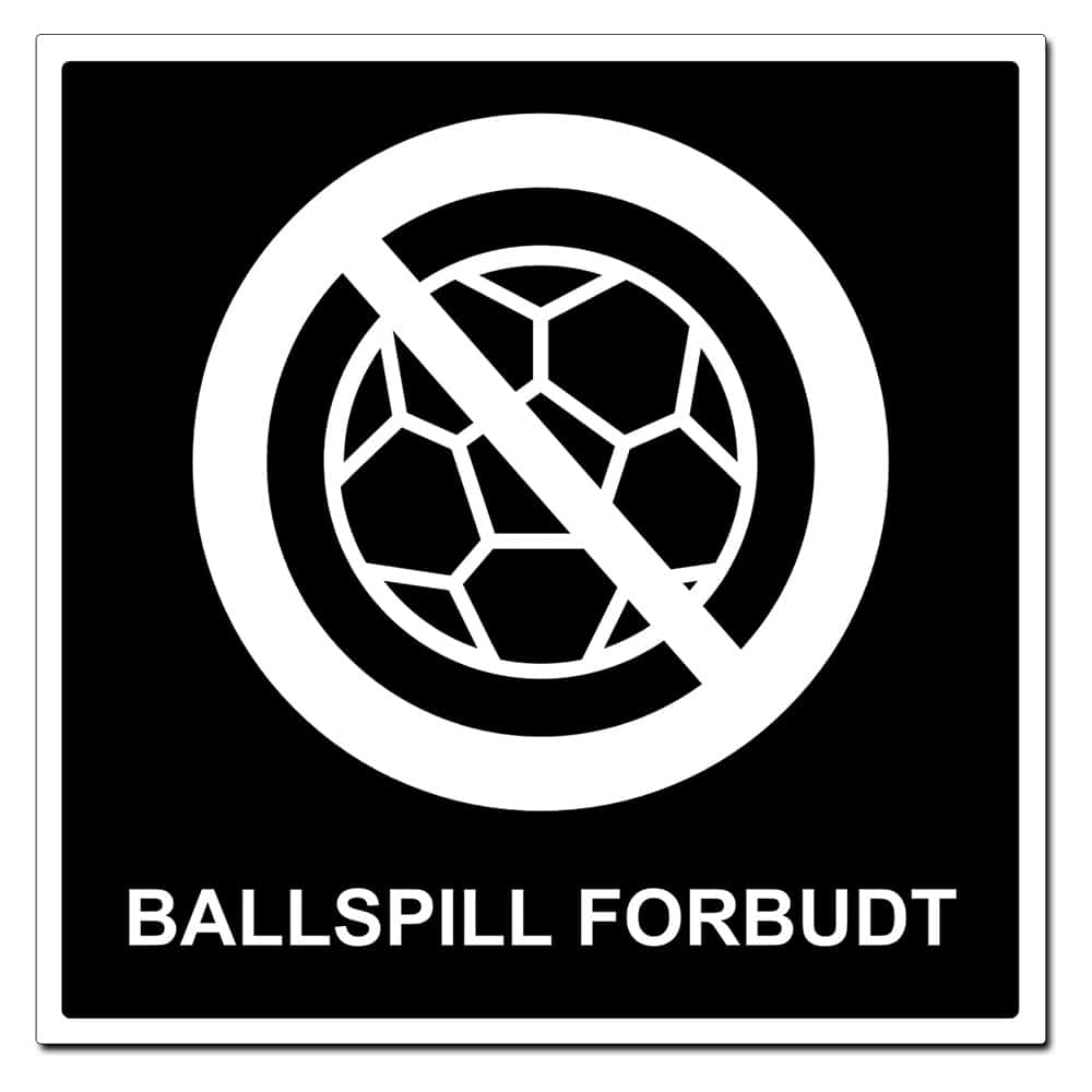 Dette skiltet er ikke bare en varsling, men også en visuell erklæring. Med en størrelse på 500x500mm er det umulig å ignorere, og indikerer klart at det ikke er tillatt å spille ballspill der området er markert. Den tydelige sort/hvite kontrasten med det internasjonale forbudt symbolet gir en universell forståelse, uavhengig av språkbarrierer.