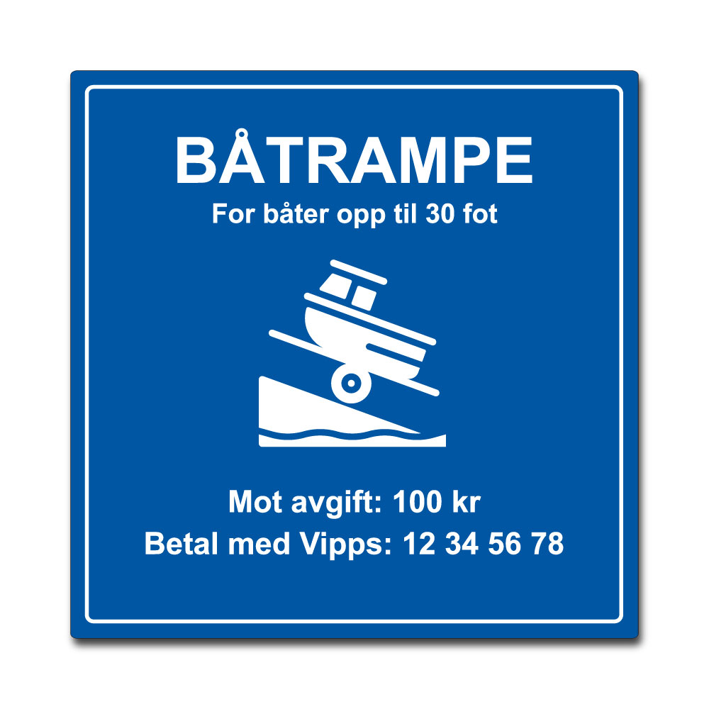 Båtrampe mot avgift og Vippsnummer – Blå – 50×50