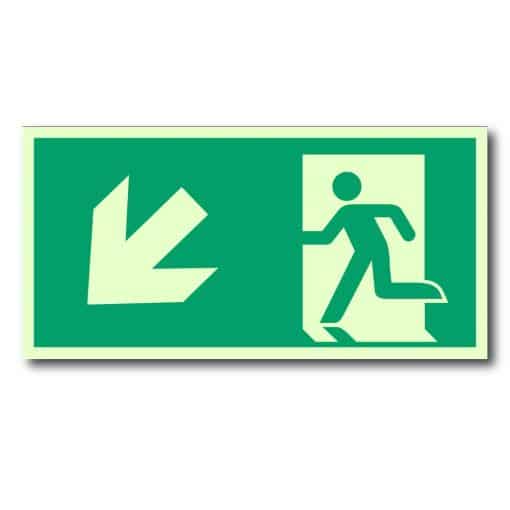 Spesifikasjoner på Etterlysende nødutgangsskilt – pil venstre ned for rømningsvei