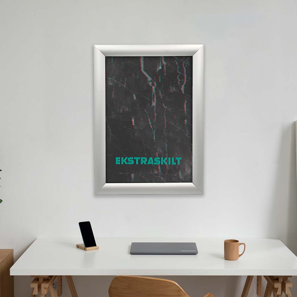 Rammen har klikklister / snapframe, noe som gjør det superenkelt å skifte plakat. spenn ut listene og legge plakaten på innsiden av frontplaten og spenn tilbake igjen. Perfekt for deg som trenger å skifte budskap ofte.