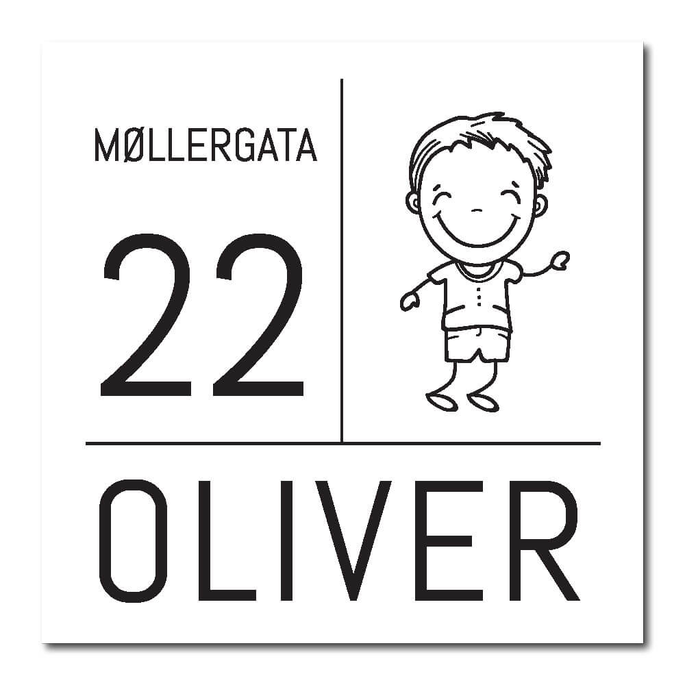 Enkel montering: Kan leveres med selvklebende bakside, slik at barna selv kan være med på å sette det opp på postkassen eller døra.