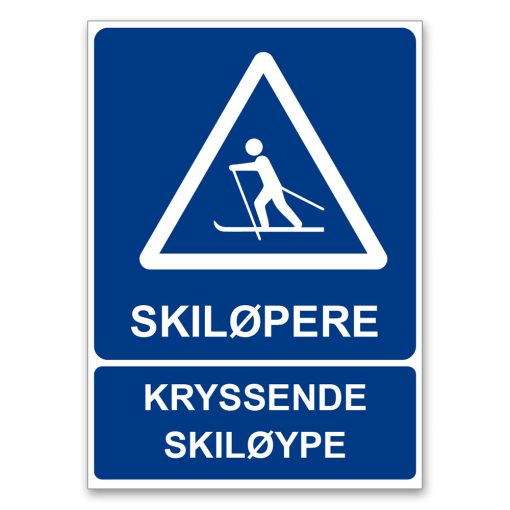 Dette skiltet er ikke bare en varsling, men også en visuell erklæring. Med størrelser på A3/50x70cm/70x100cm er det umulig å ignorere, og det sender en klar beskjed om kryssende skiløype. Den tydelige sort/hvite kontrasten med det internasjonale fare skilt symbolet gir en universell forståelse, uavhengig av språkbarrierer.