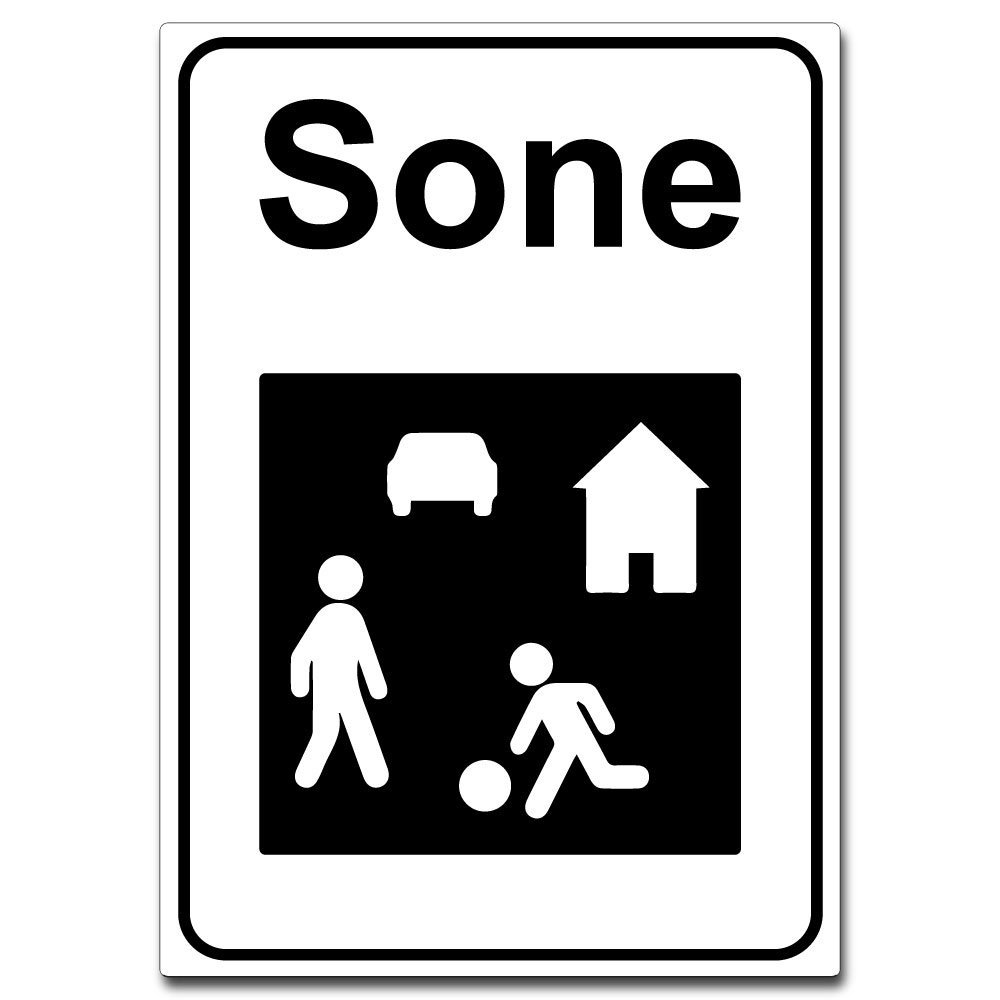 Skiltet «Sone – Gårdstun – Hvit» markerer tydelig at området er et gårdstun der myke trafikanter har prioritet, og hvor kjøring skal foregå på fotgjengernes premisser. Dette bidrar til et tryggere og mer oversiktlig miljø for både beboere og besøkende.