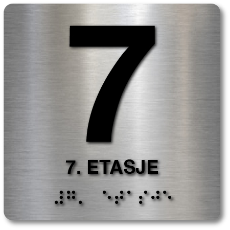 Gjør ditt bygg tilgjengelig for alle med våre spesialdesignede taktile skilter for “7. Etasje”. Dette skiltet kommer i både en variant med braille (punktskrift) og en uten braille, slik at du kan velge den løsningen som passer best for ditt bygg og dine brukere. Begge variantene har opphevede tall og tekst for enkel navigasjon og tydelig lesbarhet, noe som gjør dem ideelle for både offentlige og private bygg.