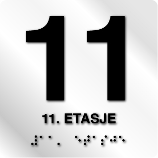 Taktile skilt med og uten Braille – 11. Etasje – Hvit Alu Panel