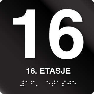 Gjør ditt bygg tilgjengelig for alle med våre spesialdesignede taktile skilter for “16. Etasje”. Dette skiltet kommer i både en variant med braille (punktskrift) og en uten braille, slik at du kan velge den løsningen som passer best for ditt bygg og dine brukere. Begge variantene har opphevede tall og tekst for enkel navigasjon og tydelig lesbarhet, noe som gjør dem ideelle for både offentlige og private bygg. Skiltet er laget av sort aluminiumspanel, som gir et moderne og profesjonelt utseende.