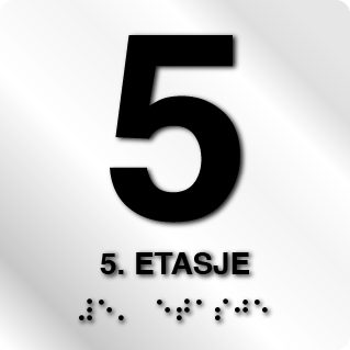 Taktile skilt med og uten Braille – 5. Etasje – Hvit Alu Panel
