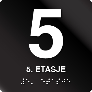 Gjør ditt bygg tilgjengelig for alle med våre spesialdesignede taktile skilter for “5. Etasje”. Dette skiltet kommer i både en variant med braille (punktskrift) og en uten braille, slik at du kan velge den løsningen som passer best for ditt bygg og dine brukere. Begge variantene har opphevede tall og tekst for enkel navigasjon og tydelig lesbarhet, noe som gjør dem ideelle for både offentlige og private bygg. Skiltet er laget av sort aluminiumspanel, som gir et moderne og profesjonelt utseende.