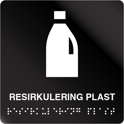 Sørg for tydelig merking av resirkuleringspunkter med vårt taktile skilt for plast. Dette skiltet kombinerer ikonisk design med praktisk funksjonalitet, og er tilgjengelig i både braille- og ikke-braille-variant. Med sitt opphevede symbol og sorte aluminiumsoverflate oppfyller det kravene til universell utforming og sikrer enkel orientering for alle brukere.