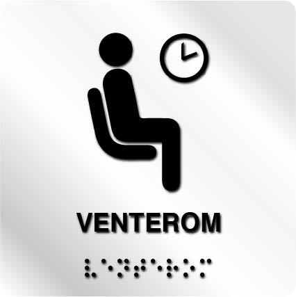 Sikre klar og tydelig skilting med vårt taktile skilt for venterom. Dette skiltet, laget av slitesterkt hvit aluminiumspanel, kombinerer et minimalistisk og profesjonelt design med funksjonalitet som oppfyller kravene til universell utforming. Skiltet er tilgjengelig både med og uten braille (punktskrift), og de opphevede symbolene og teksten gir enkel identifikasjon for alle brukere.