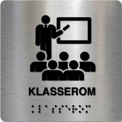 Sørg for tydelig og profesjonell skilting med vårt taktile skilt for klasserom. Dette skiltet kombinerer et stilrent design med taktile elementer, inkludert braille (punktskrift), som sikrer enkel orientering for alle brukere. Med sitt opphevede symbol og børstet aluminiumsoverflate oppfyller skiltet kravene til universell utforming og gir en moderne fremtoning.