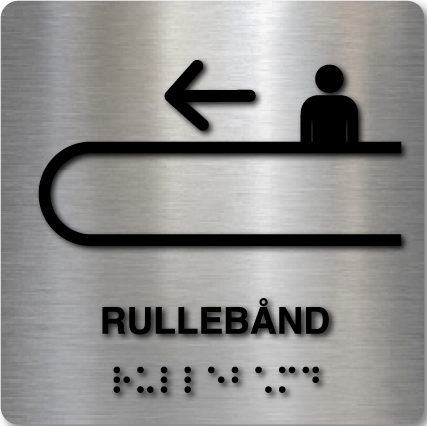 Taktilt skilt – Rullebånd med Pil Venstre – Børstet Alu Panel