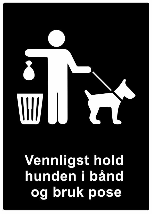 Vennligst hold hunden i bånd og bruk pose – Opplysningsskilt